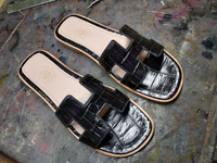 Шлепки женские со декоративными вставками из кожи крокодила, шлепки в стиле Hermes Oran Sandal. Данная пара обуви была отшита Мастером по индивидуальному заказу.