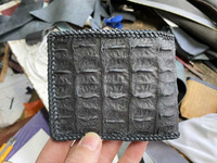 Индивидуальный пошив кошельков складных из фактурной крокодиловой кожи с ручной оплеткой в черном цвете. Кошелек стандартного размера ширина 12см высота 9см, толщина 3см.