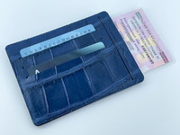 Картхолдер под СТС из натуральной крокодиловой кожи, брюшная часть сиамского крокодила темно-синего цвета. Данная модель картхолдера унисекс и подходит как мужчинам, так и женщинам и была отшита нами под заказ, отшивали этот картхолдер мы специально под российский рынок, картхолдер был несколько увеличен в размере и в него были добавлены отделения для свидетельства о регистрации транспортного средства, в обиходной речи СТС. Для пошива данной модели картхолдера была использована натуральная кожа сиамского крокодила, брюшная часть с крупной клеткой. Крокодиловая кожа высокого качества выделки и окраса. Данный картхолдер состоит из двух отделений под СТС – по одному с каждой стороны и шести слотов для карточек, по три слота с каждой стороны картхолдера. В слот для карточек с легкостью помещается водительское удостоверение. Практически не занимающий места картхолдер, очень удобен в использовании и помещается в любой карман. Практичный подарок человеку, у которого есть автомобиль.