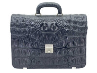 Мужской фактурный крокодиловый портфель формата А-4, черного цвета. Ширина – 38см, высота – 27см, толщина- 12см. Для изготовления портфелей данной модели используется натуральная кожа сиамского крокодила, фактурные спинные гребни, кожа высокого качества выделки и окраса. На передней части крокодилового портфеля расположен откидывающийся вверх лицевой клапан. Лицевой клапан украшен большой, фактурной затылочной частью сиамского крокодила. Затылочная часть симметричная, очень фактурная, шириной 14см. В нижней части лицевого клапана устроен кодовый замок, фиксирующий лицевой клапан в нижней части. В верхней части портфеля из кожи крокодила расположена объемная ручка, выполненная из крокодиловой кожи. На передней части крокодилового портфеля, под лицевым клапаном устроена вставка из натуральной фактурной кожи крокодила. Обратная часть портфеля выполнена из фактурной крокодиловой кожи. Для большей эластичности, боковые вставки крокодилового портфеля выполнены в натуральной коже теленка, цвет кожи теленка подобран под цвет крокодиловой кожи. Внутри фактурный портфель состоит из двух независимых отделений разделенным плоским карманом на молнии. Для продолжительного удобства пользования данным крокодиловым портфелем внутри портфеля устроены удобные карманы: объемный карман на молнии, два объемных и глубоких кармана которые можно использовать и как карман для телефона и как карман для калькулятора небольшого размера, два колечка для пишущих принадлежностей. На лицевой поверхности портфеля из крокодила, под лицевым клапаном устроен плоский карман на всю ширину портфеля. В верхней части боковых поверхностей портфеля расположены D-образные кольца для крепления съемного плечевого ремня. Съемный, специально удлиненный, регулируемый по длине плечевой ремень, с диапазоном регулировки от 100см, до 200см идет в комплекте с портфелем. Длина плечевого ремня указана линейно, если вам необходимо понять высоту от верха портфеля до верха плечевого ремня –делите указанную длину пополам. Плечевой ремень выполнен на широкой нейлоновой ленте, ширина ленты 40мм, в качестве дополнительной отделки и украшения крокодилового портфеля нейлоновая лента отделена полосой из натуральной крокодиловой кожи, в качестве удобства пользования этим портфелем плечевой ремень оборудован съемной плечевой «лопаткой» выполненной из кожи теленка и кожи крокодила. В качестве материала подклада применена кожа теленка и текстиль.