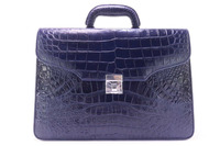 Мужской портфель из крокодиловой кожи нежнейшая брюшная часть формат А4 темно-синего цвета. Ширина-38см, высота-28см, толщина-10см. Для пошива портфелей данной модели используется натуральное брюхо сиамского крокодила, брюшная часть, кожа крокодила высокого качества выделки и окраса, эластичная и очень приятная на ощупь. Данная серия портфелей была отшита по индивидуальному заказу, особенностью данных крокодиловых портфелей является то, что все видимые части портфеля отшиты в крокодиловой коже, лицевая и обратная часть, а также боковые части и дно портфеля, а внутри портфеля был убрано откидывающееся вниз отделение. На лицевой поверхности портфеля устроен лицевой клапан, клапан откидывается вверх, в нижней части клапан фиксируется к портфелю на металлический кодовый замок. В верхней части обратной стороны портфеля устроен плоский карман на всю ширину портфеля. В верхней части портфеля распложена удобная объемная ручка, выполненная из кожи крокодила. Следует особо отметить что крокодиловый портфель данной модели выпускается без плечевого ремня и без специальных колец для крепления плечевого ремня. Плоский карман на молнии делит внутренний объем портфеля на два отделения. Для повышения уровня удобства пользования портфелем внутри портфеля устроены карманы для предметов первой необходимости, накладной карман на молнии и маленький накладной кармашек для карточек или ключей и кармашки для пишущих принадлежностей. В качестве материала подклада применена кожа теленка, цвет кожи теленка подобран под цвет крокодиловой кожи и текстиль. Крокодиловые портфели данной модели классические и отшиваются в крокодиловой коже как в фактурной спинной части, так и в нежном крокодиловом брюхе, в основном в классических цветах черном, коричневом, темно синем и светло-коричневом.