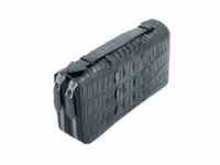 Клатч выполнен из двух отделений, в качестве дополнительного украшений использована крупная металлическая молния. Одно отделение состоит из отделений для карточек и трех отделений в которые можно размесить, банкноты, документы, мобильный телефон. Второе отделение состоит из двух плоских боковых карманов, отделений для карточек, одного плоского кармана на молнии которое может быть использовано и как отделение для монет, так и отделение для иных мелкий предметов, также в этом отделении устроено два кармашка для банкнот. Внутреннее убранство клатча выполнено из мягкой кожи теленка под цвет изделия и текситля.