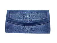 Удобный и компактный женский клатч из натуральной полированной кожи морского ската черного цвета. Клатч из полированной кожи ската данной модели можно носить как в руке, так и на плече. Клатч выполнен в классической овальной форме, на лицевой поверхности устроен откидывающийся вверх лицевой клапан, в нижней части клапан фиксируется на магнитную кнопку. Лицевая поверхность ниже лицевого клапана и обратная сторона клатча выполнены из кожи морского ската. Боковые вставки клатча отшиты с применение натуральной кожи теленка подобранной по цвету под цвет полированной кожи ската. На обратной стороне устроен широкий карман с доступом в верхней части клатча. На внутренней поверхности лицевого клапана выполнены кольца из кожи теленка, кольца предназначены для крепления плечевого ремня. Плечевой ремень из кожи теленка съемный, с пряжкой для регулировки длины ремня. Клатч внутри выполнен в одном объеме, из комбинированных материалов подклада из ткани и кожи теленка. Внутри клатча устроена пара карманов, боковой на молнии и небольшой плоский накладной карман.