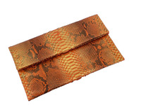 Женский клатч из натуральной кожи питона цвет оранжевый с золотым. Ширина -28см, высота – 17см, толщина 1,5-2см.