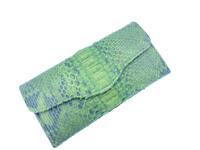 Минималистичный клатч-кошелек из питоновой кожи. Данное изделие приглянется тем из вас, кто предпочитает клатчи небольшого размера. Для пошива данных клатчей использована натуральная кожа питона, брюшная часть. Клатч выполнен в виде трехскладного кошелька и оборудован съемным плечевым ремнем. Внутри клатч устроен как трехскладный кошелек, нижний клапан фиксируется на металлическую кнопку, на нижнем клапане устроено два плоских кармана на всю ширину клатча, шесть отделений для карточек, одно из которых с прозрачным окошком. В средней части кошелька устроено шесть отделений для карточек, пара отделений для банкнот, в одном из которых может поместится небольшого размера мобильный телефон, за отделениями для банкнот устроен плоский карман на молнии, этот карман выполнен на всю ширину изделия. За плоским карманом на молнии расположен еще один удобный плоский карман. На внутренней части лицевого клапана расположены кольца для крепления съемного плечевого ремня. Съемный и регулируемый по длине плечевой ремень выполнен из кожи теленка черного цвета с отделкой кожей питона под цвет изделия. В качестве материала подклада клатча-кошелька использована кожа теленка черного цвета и текстиль.