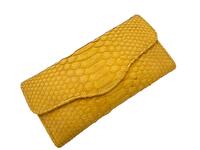 Минималистичный клатч-кошелек из питоновой кожи. Данное изделие приглянется тем из вас, кто предпочитает клатчи небольшого размера. Для пошива данных клатчей использована натуральная кожа питона, брюшная часть. Клатч выполнен в виде трехскладного кошелька и оборудован съемным плечевым ремнем. Внутри клатч устроен как трехскладный кошелек, нижний клапан фиксируется на металлическую кнопку, на нижнем клапане устроено два плоских кармана на всю ширину клатча, шесть отделений для карточек, одно из которых с прозрачным окошком. В средней части кошелька устроено шесть отделений для карточек, пара отделений для банкнот, в одном из которых может поместится небольшого размера мобильный телефон, за отделениями для банкнот устроен плоский карман на молнии, этот карман выполнен на всю ширину изделия. За плоским карманом на молнии расположен еще один удобный плоский карман. На внутренней части лицевого клапана расположены кольца для крепления съемного плечевого ремня. Съемный и регулируемый по длине плечевой ремень выполнен из кожи теленка черного цвета с отделкой кожей питона под цвет изделия. В качестве материала подклада клатча-кошелька использована кожа теленка черного цвета и текстиль.