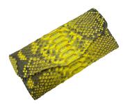 Минималистичный клатч-кошелек из питоновой кожи. Данное изделие приглянется тем из вас, кто предпочитает клатчи небольшого размера. Для пошива данных клатчей использована натуральная кожа питона, брюшная часть. Клатч выполнен в виде трехскладного кошелька и оборудован съемным плечевым ремнем. Внутри клатч устроен как трехскладный кошелек, нижний клапан фиксируется на металлическую кнопку, на нижнем клапане устроено два плоских кармана на всю ширину клатча, шесть отделений для карточек, одно из которых с прозрачным окошком. В средней части кошелька устроено шесть отделений для карточек, пара отделений для банкнот, в одном из которых может поместится небольшого размера мобильный телефон, за отделениями для банкнот устроен плоский карман на молнии, этот карман выполнен на всю ширину изделия. За плоским карманом на молнии расположен еще один удобный плоский карман. На внутренней части лицевого клапана расположены кольца для крепления съемного плечевого ремня. Съемный и регулируемый по длине плечевой ремень выполнен из кожи теленка черного цвета с отделкой кожей питона под цвет изделия. В качестве материала подклада клатча-кошелька использована кожа теленка черного цвета и текстиль.