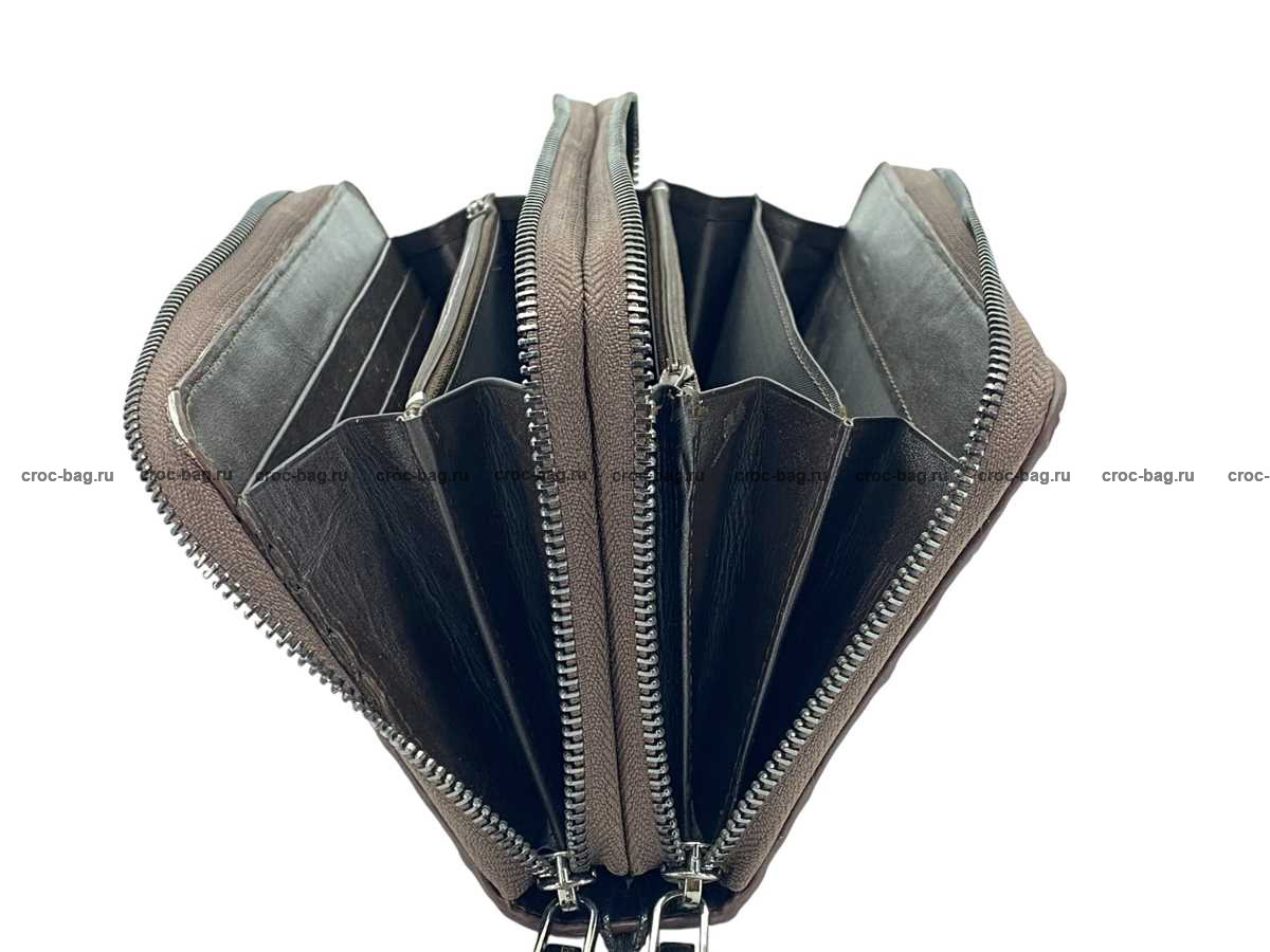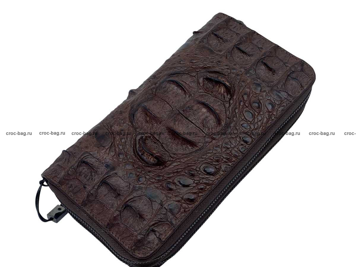 Клатч кошелек из крокодиловой кожи темно-коричневого цвета