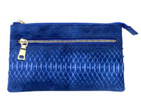 Клатч кошелек на молнии из натуральной кожи питона нубук цвет темно-синий