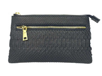 Клатч кошелек на молнии из натуральной кожи питона цвет черный