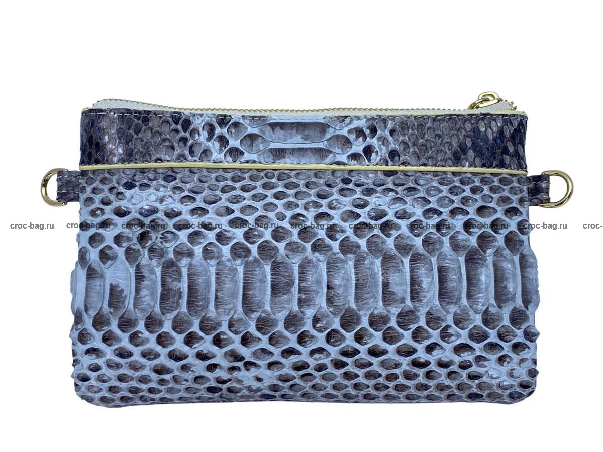 Женский клатч кошелек из кожи питона натурального окраса ссерым оттенком