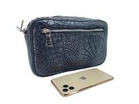 Мужской клатч прямоугольной формы изготовлен из натуральной крокодиловой кожи. Для изготовления данной модели была использована мягкая, высокого качества выделки кожа сиамского крокодила, применены гладкие части крокодиловой шкуры. Изделие внутри выполнено в одном объеме, на одной из внутренних сторон расположен боковой карман на молнии, на противоположной стороне устроен плоский накладной карман, для удобства пользования карман оборудован гладкой магнитной кнопкой. Все внешние части этого ручного клатча выполнены из крокодиловой кожи. Клатч укомплектован съемной ручкой, ручка выполнена из нейлоновой ленты с лицевой отделкой кожей рептилии. На одной из внешних сторон этого изделия вшита металлическая молния, преграждающая доступ в удобный карман. Внутреннее убранство клатча выполнено из мягкой ткани коричневого цвета.