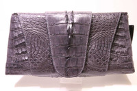 Сумки данной модели доступны из Таиланда, напишите нам мы проверим актуальное наличие, сделаем фото и видео и пришлем вам. Женская сумка-клатч из натуральной, фактурной кожи крокодила серого цвета. Ширина в нижней части-29см, Ширина в верхней части-27см, Высота-15см. Для пошива сумок данной модели используется натуральная, фактурная кожа сиамского крокодила. Кожа высокого качества выделки и окраса, мягкая и приятная на ощупь. Эта женская сумка может использоваться и как плечевая сумочка небольшого размера и как ручной женский клатч. Клатч выполнен из цельной крокодиловой шкуры, хвост крокодиловой шкуры оборачивается вокруг клатча и тем самым перекрывает доступ в основной объем клатча. Обернутый хвост фиксируется на скрытые, вшитые в материал подклада магниты. В верхней сумки клатча, на боковых поверхностях вшиты небольшие D-образные кольца для крепления съемной цепочки которая используется в качестве плечевого ремня. В качестве дополнительного украшения металлическая цепочка оплетена шнурком из натуральной кожи теленка. Внутри клатч выполнен в одном объеме, для удобства пользования внутри выполнен боковой карман на молнии, в качестве дополнительного украшения внутри сумки рядом с карманом на молнии вшита полоска из крокодиловой кожи. В качестве материала подклада использована натуральная кожа теленка, цвет кожи теленка подобран по цвету под кожу крокодила.