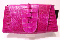 Сумки данной модели доступны из Таиланда, напишите нам мы проверим актуальное наличие, сделаем фото и видео и пришлем вам. Женская сумка-клатч из натуральной, фактурной кожи крокодила цвета фуксия. Ширина в нижней части-29см, Ширина в верхней части-27см, Высота-15см. Для пошива сумок данной модели используется натуральная, фактурная кожа сиамского крокодила. Кожа высокого качества выделки и окраса, мягкая и приятная на ощупь. Эта женская сумка может использоваться и как плечевая сумочка небольшого размера и как ручной женский клатч. Клатч выполнен из цельной крокодиловой шкуры, хвост крокодиловой шкуры оборачивается вокруг клатча и тем самым перекрывает доступ в основной объем клатча. Обернутый хвост фиксируется на скрытые, вшитые в материал подклада магниты. В верхней сумки клатча, на боковых поверхностях вшиты небольшие D-образные кольца для крепления съемной цепочки которая используется в качестве плечевого ремня. В качестве дополнительного украшения металлическая цепочка оплетена шнурком из натуральной кожи теленка. Внутри клатч выполнен в одном объеме, для удобства пользования внутри выполнен боковой карман на молнии, в качестве дополнительного украшения внутри сумки рядом с карманом на молнии вшита полоска из крокодиловой кожи. В качестве материала подклада использована натуральная кожа теленка, цвет кожи теленка подобран по цвету под кожу крокодила.