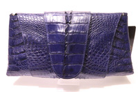 Сумки данной модели доступны из Таиланда, напишите нам мы проверим актуальное наличие, сделаем фото и видео и пришлем вам. Женская сумка-клатч из натуральной, фактурной кожи крокодила темно синего цвета. Ширина в нижней части-29см, Ширина в верхней части-27см, Высота-15см. Для пошива сумок данной модели используется натуральная, фактурная кожа сиамского крокодила. Кожа высокого качества выделки и окраса, мягкая и приятная на ощупь. Эта женская сумка может использоваться и как плечевая сумочка небольшого размера и как ручной женский клатч. Клатч выполнен из цельной крокодиловой шкуры, хвост крокодиловой шкуры оборачивается вокруг клатча и тем самым перекрывает доступ в основной объем клатча. Обернутый хвост фиксируется на скрытые, вшитые в материал подклада магниты. В верхней сумки клатча, на боковых поверхностях вшиты небольшие D-образные кольца для крепления съемной цепочки которая используется в качестве плечевого ремня. В качестве дополнительного украшения металлическая цепочка оплетена шнурком из натуральной кожи теленка. Внутри клатч выполнен в одном объеме, для удобства пользования внутри выполнен боковой карман на молнии, в качестве дополнительного украшения внутри сумки рядом с карманом на молнии вшита полоска из крокодиловой кожи. В качестве материала подклада использована натуральная кожа теленка, цвет кожи теленка подобран по цвету под кожу крокодила.