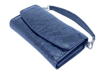 Женский клатч из натуральной крокодиловой кожи, ручной клатч из кожи крокодила, маленькая плечевая крокодиловая сумочка для женщин. Для пошива клатча данной модели использована натуральная высокого качества выделки и окраса кожа сиамского крокодила гладкая часть шкуры крокодила. Крокодиловая кожа высокого качества окраса и выделки, приятная на ощупь, эластичная и с неповторимой природной фактурой. Откидывающийся вверх лицевой клапан устроен на лицевой поверхности сумки, клапан исполнен в крокодиловой коже. Лицевая часть сумки, устроенная ниже лицевого клапана, плавно перетекает на обратную сторону клатча, так же выполнены из кожи сиамского крокодила. В нижней части лицевого клапана устроена магнитная кнопка, посредством этого магнита лицевой клапан крепится к клатчу, обратная часть лицевого клапана пришита на обратной стороне клатча. На обратной стороне клатча из кожи крокодила устроен удобный плоский карман, доступ в карман выполнен в верхней части клатча, карман выполнен на всю ширину и высоту клатча. В верхней части лицевого клатча, по бокам вшиты металлические кольца, к этим кольцам прикреплена верхняя ручка, крепление верхней ручки выполнено с применением металлических карабинов, устроенных по бокам верхней ручки. Верхняя ручка клатча отшита на основании из кожи теленка черного цвета, верхняя часть ручки имеет отделку крокодиловой кожей. Отстегнув верхнюю ручку, клатч превращается просто в ручной клатч из кожи крокодила. Для придания данному клатчу большей эластичности и подвижности боковые вставки клатча отшиты с применением натуральной кожи теленка, кожа теленка по цвету подобрана под цвет кожи крокодила. Внутри клатча, на лицевой поверхности, под откидывающимся вверх лицевым клапаном устроено два отделения для карточек. Основной объем клатча выполнен из трех отделений: Одного отделения на молнии и двух открытых отделений, на плоской стенке, разделяющей два открытых отделения выполнены кармашки для карточек. В отделении на молнии внутри устроено два более мелких кармашка-отделения для банкнот и других мелких, но ценных предметов первой необходимости. В два открытых отделения спокойно помещается, мобильный телефон, ключа, косметика и прочие повседневные предметы. Клатч данной модели укомплектован съемным плечевым ремнем. Плечевой ремень изготовлен из кожи теленка черного цвета, ширина плечевого ремня 1.5см, максимальная длина 120см, ремень с возможностью регулировки по длине. При необходимости съемный плечевой ремень крепится к металлическим D –образным кольцам расположенных в верхней части лицевого клапана по бокам. Кожа теленка и текстиль черного цвета использованы в качестве материала подклада.