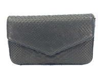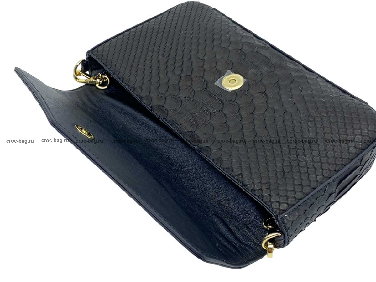 Женская сумка клатч из натуральной питоновой кожи, прямоугольной формы, с откидывающимся вверх лицевым клапаном. Клапан расположен на лицевой части сумки из кожи питона и фиксируется на металлическую магнитную кнопку устроенную под клапаном. Питоновый клатч внутри однообъемный, внутри устроены удобные карманы, плоский широкий и отделения для карточек. В комплекте с данным клатчем из кожи питона идет металлическая цепочка в качестве плечевого ремня. Текстиль применен как материал подклада в данной питоновой сумке.
