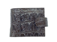 Складной кошелек из фактурной кожи крокодила с монетницей и внешним хлястиком темно-коричневого цвета . Кошелек изготовлен из натуральной кожи сиамского крокодила, на лицевой части кошелька расположена фактурная спинная часть переходящая в хвостовую часть крокодиловой шкуры, переходящая в брюшную часть на обратной стороне кошелька. Внутри кошелек выполнен из натуральной кожи теленка подобранной под цвет кожи крокодила и текстиля. Внутри кошелек состоит из двух отделений для банкнот, шести слотов для карточек на первом развороте кошелька, отделением с прозрачным окошком и отделением для монет на втором развороте кошелька. Для удобства пользования во избежание произвольного открытия кошелек оборудован внешним хлястиком, хлястик выполнен из крокодиловой кожи. Данный крокодиловый кошелек являет собой классическую модель складного кошелька прямоугольной формы. Кошельками из кожи крокодила данной модели могут пользоваться как мужчины, так и женщины.