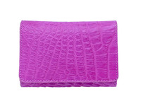 Женский кошелек тройного сложения из натуральной кожи крокодила гладкие части крокодиловой шкуры, цвет фуксия. Удобная и популярная женская модель крокодилового кошелька. Для пошива кошельков данной модели фабрика использует натуральную кожу сиамского крокодила с различными природными фактурами и рисунками крокодиловой кожи. Крокодиловые кошельки данной модели приглянуться тем из вас, кто предпочитает складные кошельки с очень удобным функционалом. Данная модель кошельков внутри состоит из: отделения для банкнот, отделения для монет, девяти слотов для карточек одно из которых выполнено с прозрачным окошком и пяти плоских кармашков с доступом из центральной части кошелька, эти кармашки расположены и под отделения для карточек и под отделением для монет. Мягкая, натуральная кожа теленка, подобранная по цвету под цвет кожи крокодила и текстиль применяются в данных крокодиловых кошельках в качестве материалов подклада. Данные женские кошельки модели являются очень популярной моделью и отшиваются как из крокодиловой кожи, так и из кожи морского ската и кожи питона.