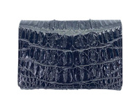 Женский кошелек тройного сложения из натуральной кожи крокодила с мелкой хвостовой фактурой шкуры молоденьких крокодильчиков, цвет черный. Удобная и популярная женская модель крокодилового кошелька. Для пошива кошельков данной модели фабрика использует натуральную кожу сиамского крокодила с различными природными фактурами и рисунками крокодиловой кожи. Крокодиловые кошельки данной модели приглянуться тем из вас, кто предпочитает складные кошельки с очень удобным функционалом. Данная модель кошельков внутри состоит из: отделения для банкнот, отделения для монет, девяти слотов для карточек одно из которых выполнено с прозрачным окошком и пяти плоских кармашков с доступом из центральной части кошелька, эти кармашки расположены и под отделения для карточек и под отделением для монет. Мягкая, натуральная кожа теленка, подобранная по цвету под цвет кожи крокодила и текстиль применяются в данных крокодиловых кошельках в качестве материалов подклада. Данные женские кошельки модели являются очень популярной моделью и отшиваются как из крокодиловой кожи, так и из кожи морского ската и кожи питона.