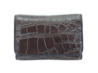Женский кошелек тройного сложения из натуральной кожи крокодила с брюшной и гладкой фактурой крокодиловой кожи, цвет темно-коричневый. Удобная и популярная женская модель крокодилового кошелька. Для пошива кошельков данной модели фабрика использует натуральную кожу сиамского крокодила с различными природными фактурами и рисунками крокодиловой кожи. Крокодиловые кошельки данной модели приглянуться тем из вас, кто предпочитает складные кошельки с очень удобным функционалом. Данная модель кошельков внутри состоит из: отделения для банкнот, отделения для монет, девяти слотов для карточек одно из которых выполнено с прозрачным окошком и пяти плоских кармашков с доступом из центральной части кошелька, эти кармашки расположены и под отделения для карточек и под отделением для монет. Мягкая, натуральная кожа теленка, подобранная по цвету под цвет кожи крокодила и текстиль применяются в данных крокодиловых кошельках в качестве материалов подклада. Данные женские кошельки модели являются очень популярной моделью и отшиваются как из крокодиловой кожи, так и из кожи морского ската и кожи питона.