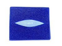 Классический складной кошелек из натуральной кожи морского ската цвет темно-синий. Натуральная кожа морского ската применяется фабрикой при пошиве кошельков данной модели. Основным украшением данного кошелька является горизонтальный белый глазок, такие белые глазки появляются при окрашивании кожи морского ската. При окрашивании шкурок морского ската классическим путем, белым цветом выделяют центральную спинную часть шкурки ската. Складной прямоугольный кошелек из кожи ската, классическая модель кошельков во всех его проявлениях, по форме и по содержанию. Внутри кошелек состоит из откидывающегося вверх окошка с двумя слотами для карточек с прозрачными окошками, по одному с каждой стороны. Шести отделений слотов для различных карточек, по три с каждой стороны кошелька и четырьмя плоскими кармашками с доступом из центральной части, по два кармашка с каждой стороны кошелька под слотами для карточек. Так же кошелек состоит из двух отделений для банкнот. Кошельками из кожи морского ската данной модели могут пользоваться как женщины, так и мужчины, тут все дело обстоит в ваших цветовых предпочтениях. Натуральная кожа теленка, подобранная по цвету под цвет кожи морского ската применяется в качестве материала подклада, также в качестве материала подклада используется ткань.