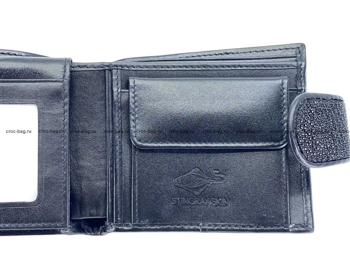 Кошелек из кожи морского ската с монетницей и хлястиком 5324