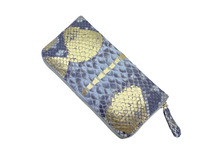 Кошелек на молнии из кожи питона цвет натуральный с золотом
