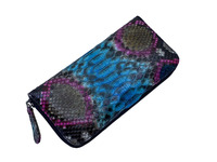 Удобный, вместительный и высоко-функциональный кошелек из натуральной кожи питона на молнии. Для пошива кошельков данной модели используется натуральная питоновая кожа, брюшная часть, кожа высокого качества выделки и окраса, кожа змеи мягкая, эластичная, упругая и очень приятная на ощупь. Питоновые кошельки на молнии, довольно популярная модель кошельков. В зависимости от цветовых предпочтений, кошельками из кожи питона на молнии могут пользоваться как женщины, так и мужчины. Питоновый кошелек оборудован П-образной молний, ширина открытия кошелька позволяет без труда найти в кошельке необходимый предмет. Внутри кошелек из змеиной кожи состоит от восьми до двенадцати отделений для карточек, из двух удобных плоских карманов, расположенных над отделениями для карточек, по одному с каждой стороны кошелька, центрального отделения на молнии, в котором можно хранить как любые мелкие ценные предметы, так и использовать как отделение для монет, из двух центральных отделений для банкнот, документов и автодокументов. Кошелек из кожи питона на одной молнии довольно вместительный. В нем можно хранить автодокументы, паспорт, военный билет, и не очень большой по размеру сотовый телефон. Внутреннее убранство кошелька выполнено из мягкой ткани. Кошельки из кожи питона данной модели отшиваются в натуральной коже питона различного окраса, как в классических цветах черный, кофейный, темно-синий, красный, так и в ярких цветах.