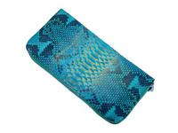 Удобный, вместительный и высоко-функциональный кошелек из натуральной кожи питона на молнии. Для пошива кошельков данной модели используется натуральная питоновая кожа, брюшная часть, кожа высокого качества выделки и окраса, кожа змеи мягкая, эластичная, упругая и очень приятная на ощупь. Питоновые кошельки на молнии, довольно популярная модель кошельков. В зависимости от цветовых предпочтений, кошельками из кожи питона на молнии могут пользоваться как женщины, так и мужчины. Питоновый кошелек оборудован П-образной молний, ширина открытия кошелька позволяет без труда найти в кошельке необходимый предмет. Внутри кошелек из змеиной кожи состоит от восьми до двенадцати отделений для карточек, из двух удобных плоских карманов, расположенных над отделениями для карточек, по одному с каждой стороны кошелька, центрального отделения на молнии, в котором можно хранить как любые мелкие ценные предметы, так и использовать как отделение для монет, из двух центральных отделений для банкнот, документов и автодокументов. Кошелек из кожи питона на одной молнии довольно вместительный. В нем можно хранить автодокументы, паспорт, военный билет, и не очень большой по размеру сотовый телефон. Внутреннее убранство кошелька выполнено из мягкой ткани. Кошельки из кожи питона данной модели отшиваются в натуральной коже питона различного окраса, как в классических цветах черный, кофейный, темно-синий, красный, так и в ярких цветах.