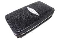 Клатч-кошелек на двух молниях из кожи морского ската цвет черный