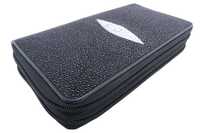 Клатч-кошелек на двух молниях, с кармашком на обратной стороне, из кожи морского ската цвет черный