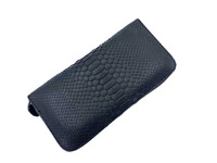 Кошелек на молнии из натуральной кожи питона, брюшная часть, цвет черный.