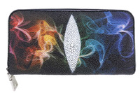 Кошелек на молнии из кожи морского ската черного цвета с разноцветными волнистыми линиями в качесвте узоров
