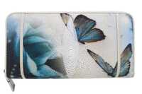 Кошелек на молнии из кожи морского ската с узорами в виде цветов и бабочек