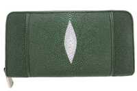 Кошелек на молнии из кожи морского ската темно-зеленого цвета