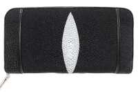 Популярная модель среднеразмерного кошелька на молнии из натуральной кожи морского ската. Данная модель кошелька из кожи ската на молнии популярна как среди женщин, так и среди мужчин, тут все зависит от ваших вкусовых предпочтений в цвете кошелька. Кошельки данной модели придутся по вкусу тем из вас кто отдает предпочтение, функциональным кошелькам на молнии среднего размера. Для пошива кошельков данной модели используется натуральная кожа морского ската, кожа ската первого сорта, кожа ската высочайшего качества выделки, кожа крупнозернистая, эластичная и упругая, мягка и приятная на ощупь. В основном, на лицевой поверхности кошелька мы можем видеть белый глазок, таким образом, белым глазком, при окрашивании выделяется центральная часть шкуры морского ската, центральная спинка кожи ската. Но белый глазок на кошельках из кожи ската встречается не всегда, иногда бывают разноцветные принты и при таком окрашивании кожи морского ската белый глазок могут не окрашивать. Также бывает, что кошельки из кожи морского ската отшивают с применением полированной кожи морского ската, в этом случае, на лицевой поверхности кошелька мы увидим крупные белёсые зерна центральной части шкуры морского ската. Кошельки из кожи ската на молнии данной модели довольно функциональны, кошельки оборудованы П-образной металлической молнией, ширина раскрытия открытого кошелька более девяноста градусов, что позволяет с удобством и комфортом обнаружить и достать из кошелька, любой предмет, в том числе карточки размещенные на внутренних боковых поверхностях кошелька. Данная модель кошелька из натуральной кожи морского ската на молнии состоит из восьми отделений для карточек, двух широких карманов, устроенных на всю ширину изделия и расположенных за отделениями для карточек на внутренних сторонах кошелька. Пары отделений для банкнот расположенных по сторонам от центрального отделения-кармашка на молнии, данное отделение на молнии можно использовать и как монетницу и как отделение на молнии для хранения чего-то ценного. Данный кошелёк из кожи морского ската не предназначен хранения и ношения мобильных телефонов, скорей кошелек предназначен исключительно для карточек, банкнот и всяких заметок, фото, иконок, оберегов, всякой мелочи что люди обычно таскают с собой в кошельке. Данная модель кошелька на молнии довольно популярная и отшивается в коже морского ската с различными узорами и в различных цветовых решениях. Также такая модель кошелька на молнии отшивается и в других сортах экзотической кожи, коже сиамского крокодила, коже питона, коже варана.