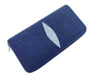 Кошелек на молнии из кожи морского ската цвет темно-синий
