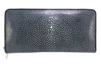 Кошелек на молнии из полированной кожи морского ската цвет черный