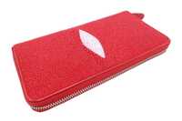 Кошелек-портмоне на молнии из натуральной кожи морского ската цвет красный