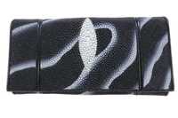 Кошелек портмоне из натуральной кожи морского ската цвет черный с узором в виде волнистых линий