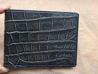 Кошелек мужской, двухскладный, классический, цвет серый, кошелек выполнен из брюшной части кожи крокодила, полностью ручная сборка и ручная прошивка, обработка края, окраска изделия.