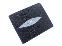 Классический складной кошелек из кожи морского ската. Для изготовления кошельков данной модели используется натуральная кожа морского ската высокого качества выделки и окраса. На лицевой поверхности кошелька устроен белый глазок, это характерная черта классических кошельков из кожи ската. На обратной стороне кошелька выполнен удобный плоский карман, карман можно использовать для хранения ключ-карты, пропуска, проездного и так далее. Внутри кошелек из ската состоит из шести отделений для различных карточек, из откидывающегося вверх отделения с прозрачным окошком с каждой стороны это откидывающееся вверх отделение расположено внутри кошелька слева. Из четырех плоских кармашков, с доступом из центральной части кошелька, по два кармашка с каждой стороны под отделениями для карточек и из двух отделений для банкнот. В качестве материала подклада используется натуральная кожа теленка и текстиль.