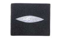 Классический складной кошелек из кожи морского ската. Для изготовления кошельков данной модели используется натуральная кожа морского ската высокого качества выделки и окраса. На лицевой поверхности кошелька устроен белый глазок, это характерная черта классических кошельков из кожи ската. таким образом, с помощью белого глазка при окрашивании кожи ската выделяют центральную часть шкуры ската, а затем эту центральную часть кожи морского ската помещают по центру кошелька. На обратной стороне кошелька выполнен удобный плоский карман, карман можно использовать для хранения ключ-карты, пропуска, проездного и так далее. Внутри кошелек из ската состоит из шести отделений для различных карточек, из откидывающегося вверх отделения с прозрачным окошком с каждой стороны это откидывающееся вверх отделение расположено внутри кошелька слева. Из четырех плоских кармашков, с доступом из центральной части кошелька, по два кармашка с каждой стороны под отделениями для карточек и из двух отделений для банкнот. В качестве материала подклада используется натуральная кожа теленка и текстиль. Кошельки данной модели это стандартная классическая модель кошелька из кожи морского ската, кошельки данной модели отшиваются в различных цветах, а также с немного измененным функционалом. Мужские кошельки из кожи морского ската этой модели также бывают с монетницей без хлястика, или же с монетницей и хлястиком.