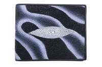 Кошелек из кожи морского ската цвет черный с узором в виде белых волнистых полосок