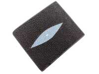 Классический складной кошелек из кожи морского ската. Для изготовления кошельков данной модели используется натуральная кожа морского ската высокого качества выделки и окраса. На лицевой поверхности кошелька устроен белый глазок, это характерная черта классических кошельков из кожи ската. На обратной стороне кошелька выполнен удобный плоский карман, карман можно использовать для хранения ключ-карты, пропуска, проездного и так далее. Внутри кошелек из ската состоит из шести отделений для различных карточек, из откидывающегося вверх отделения с прозрачным окошком с каждой стороны это откидывающееся вверх отделение расположено внутри кошелька слева. Из четырех плоских кармашков, с доступом из центральной части кошелька, по два кармашка с каждой стороны под отделениями для карточек и из двух отделений для банкнот. В качестве материала подклада используется натуральная кожа теленка и текстиль.