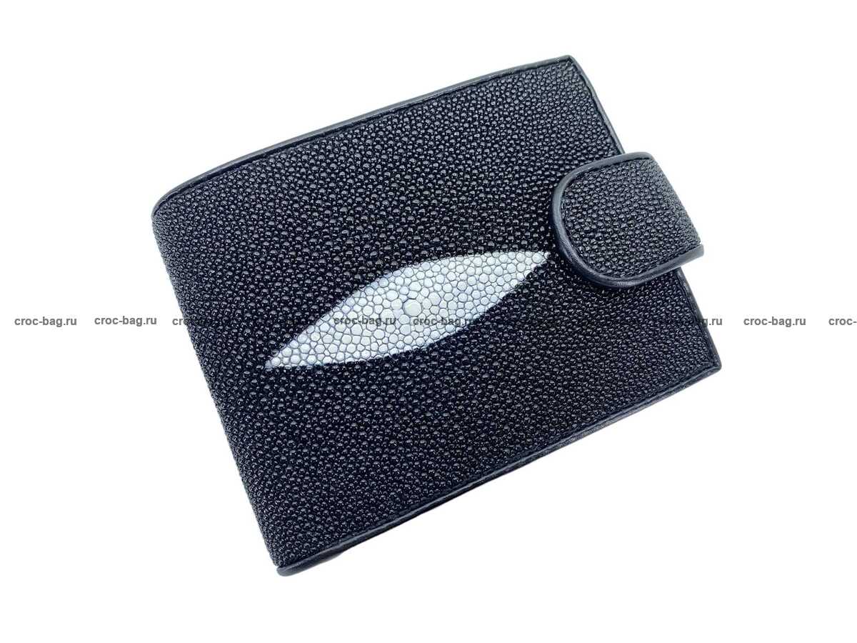 Кошелек с монетницей и хлястиком из кожи морского ската цвет черный