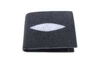 Классический складной кошелек с монетницей из натуральной кожи морского ската. Для изготовления кошельков данной модели используется натуральная кожа морского ската высокого качества выделки и окраса. На лицевой поверхности кошелька устроен белый глазок, это характерная черта классических кошельков из кожи ската. таким образом, с помощью белого глазка при окрашивании кожи ската выделяют центральную часть шкуры ската, а затем эту центральную часть кожи морского ската помещают по центру кошелька. На обратной стороне кошелька выполнен удобный плоский карман, карман можно использовать для хранения ключ-карты, пропуска, проездного и так далее. Внутри кошелек из ската состоит из трех отделений для различных карточек, из откидывающегося вверх отделения с прозрачным окошком с каждой стороны это откидывающееся вверх отделение расположено внутри кошелька слева. Из четырех плоских кармашков, с доступом из центральной части кошелька, по два кармашка с каждой стороны под отделениями для карточек и из двух отделений для банкнот. И отделением для монет, монетницей, расположенной внутри кошелька на правом его отвороте. В качестве материала подклада используется натуральная кожа теленка и текстиль. Кошельки данной модели это стандартная классическая модель кошелька из кожи морского ската, кошельки данной модели отшиваются в различных цветах, а также с немного измененным функционалом. Мужские кошельки из кожи морского ската этой модели также бывают с монетницей без хлястика, или же с монетницей и хлястиком.