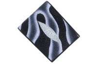 Кошелек с монетницей из кожи морского ската цвет черный с узорами в виде белых волнистых линий