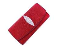 Кошелек женский из кожи морского ската цвет красный